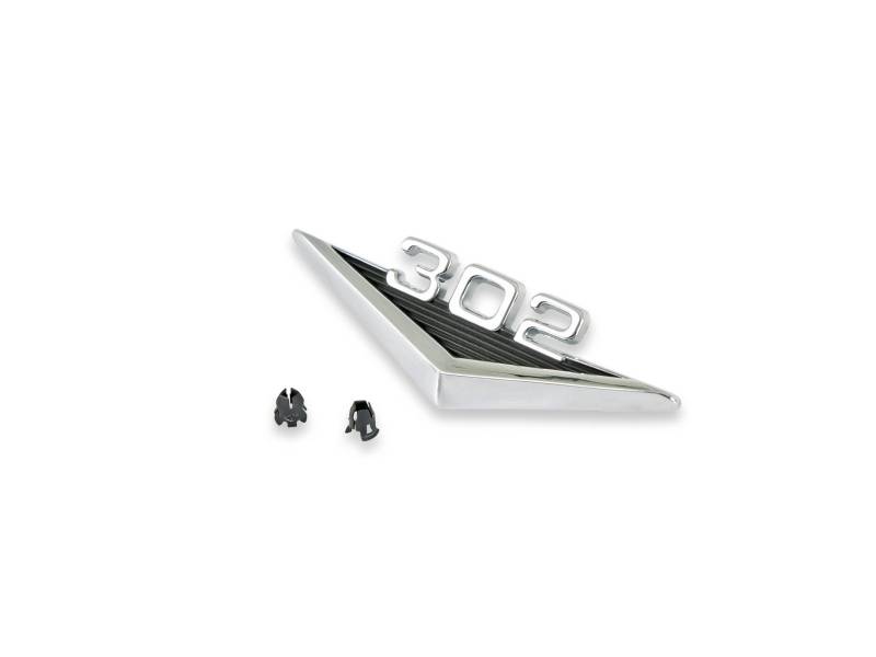 Made in response to customer requests for a 302 version of our popular reprodcution 289 emblem. Made with a perfect chrome finish and black painted background. Note: Not an authentic copy of any original Ford emblem.