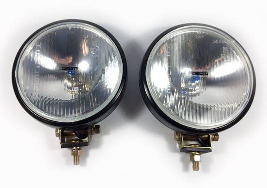 1967 - 1968 Mustang Delta 100 Series Thinline Driving (Fog) Light Kit, Black Housing, 55 Watt Xenon, Bracket, Wire Harness and Switch Included