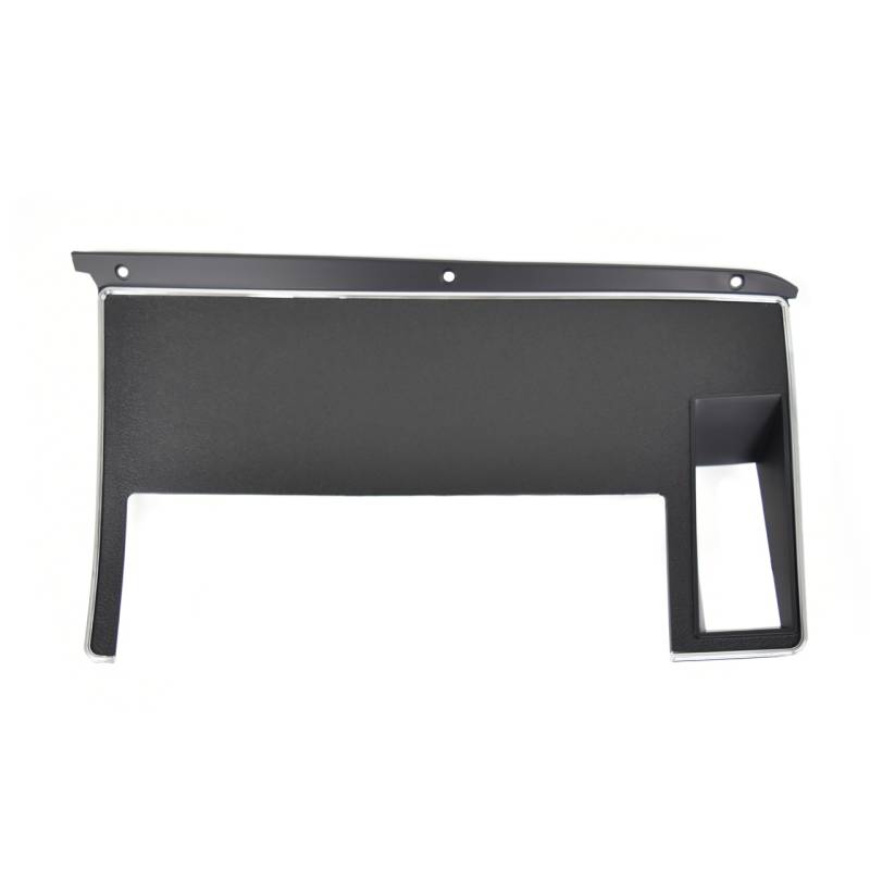 For 1971 - 1973 Mustang (71 Model Year Built before 12/1/71) this is the dash trim with has a camera case finish and chrome accents and has provisions for the air vent. This is a direct fit replacement and installs on the passengers side.