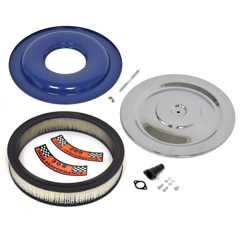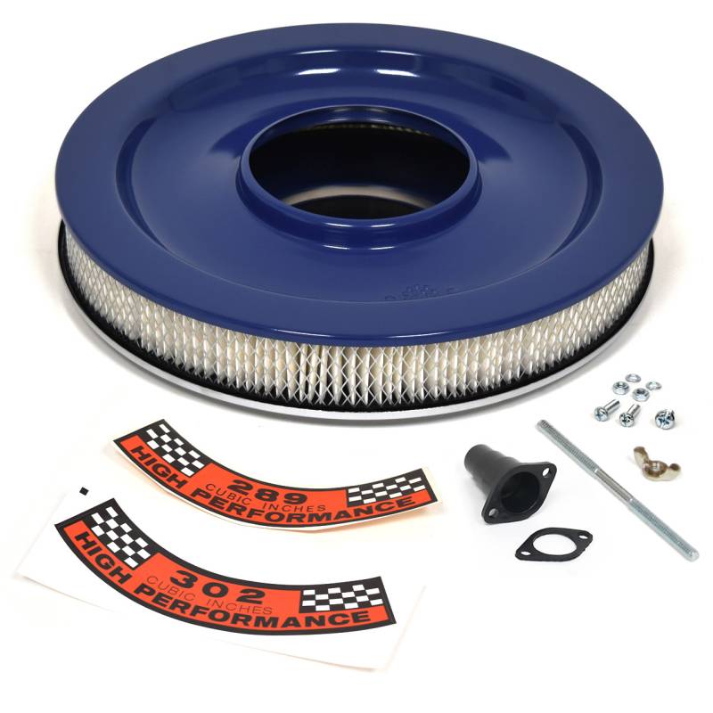 | Includes | Air cleaner housing, air cleaner filter element, 289 decal, 302 decal, wingnut, mounting stud, optional PCV tube and hardware |