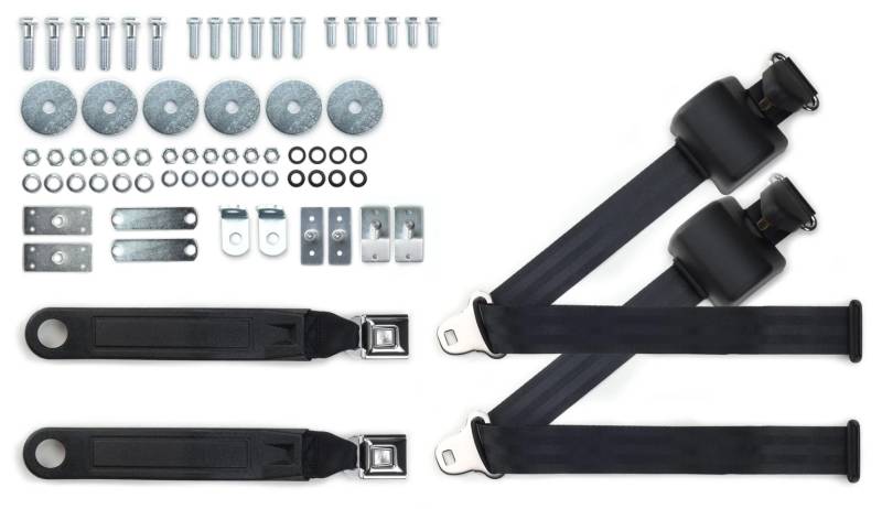 The 12-inch plastic sleeve makes this system perfect for installation in vehicles with bucket seats. The retractors hold 96 inches of webbing, with 39 inches of webbing outside for a total of over 11 feet of seat belt webbing. These seat belts feature classic chrome push-button buckles and chrome belt ends. Retractors have an advanced inertia design which locks during sudden stops. The webbing and its stitching are color-matched to the retractors. Our seat belts meet Federal Motor Vehicle Safety Standards. Many GM vehicles in the early to late 1960s were not equipped with seat belts. Adding belts to these vehicles is an invaluable investment in your vehicle and in the safety of your family. This product may require advanced fabrication skills to install anchor points; please consult a professional installation specialist. Mounting hardware and a comprehensive installation manual are included. Price is per pair of seat belts for two passengers.