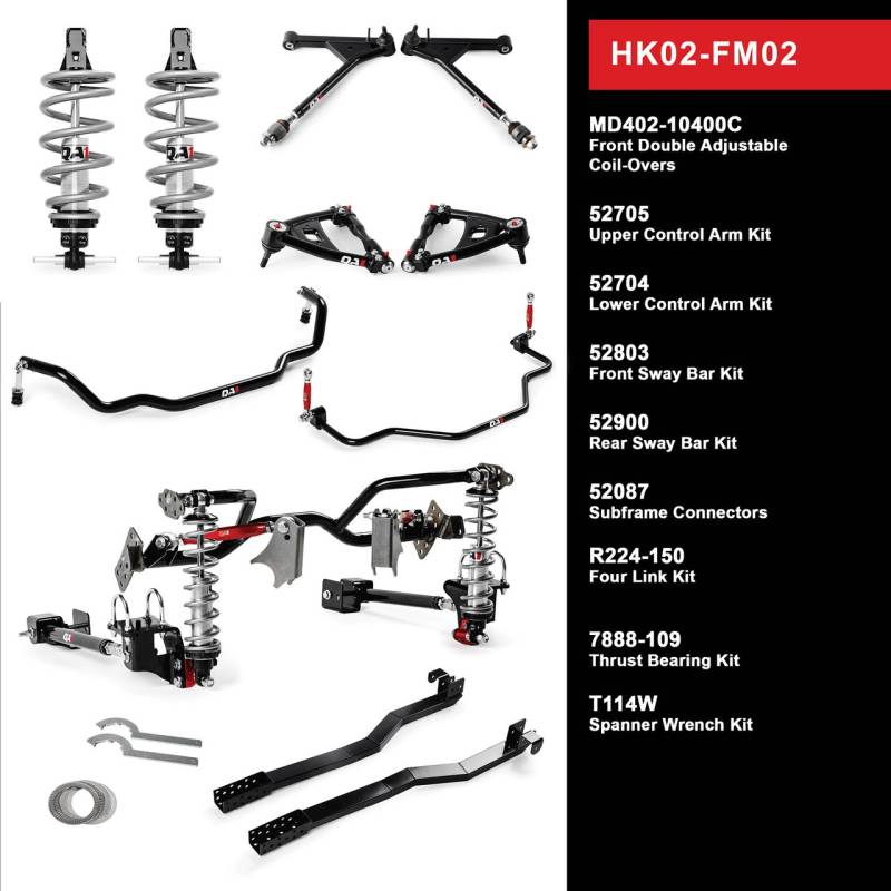 QA1 Level 2 Full Vehicle Handling Kit for 1967–1970 Ford Mustangs, Coil-Over and Suspension Conversion for Front and Rear